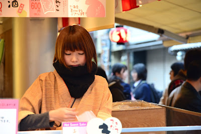 要離開淺草了 最後來一張正妹專心工作照 (這就是那個麻糬串的美女店員)