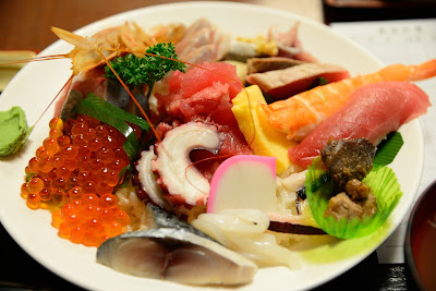 這就是它的海鮮丼 真的很多 我最後並沒有吃完它 還有留一點點飯 聽說有16種不同的海鮮
