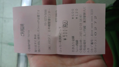 吃完午餐後 就回Hostel 拿行李 前往東京駅 我是坐地鐵到東京的 剪票口一出來就可以看到寄放行李的櫃子 這裡可以用Suica card付錢 我是選第二大的櫃子 只要500円 但東京駅裡面很多地方都有Locker 只是真的要注意是否還有空位 也要記得是寄放在哪一個地方 不然迷路就算了 還找不到自己行李寄放的地方