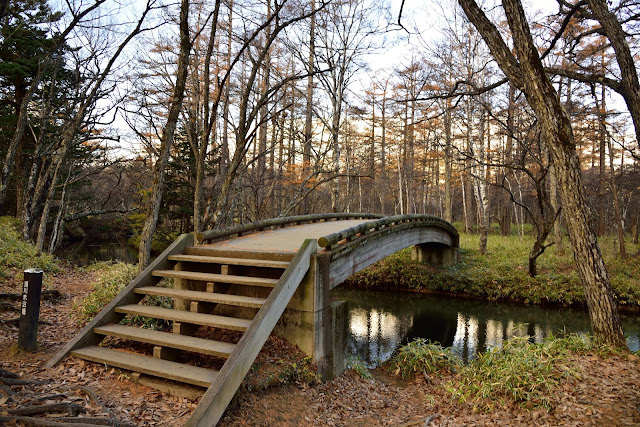 「戦場ヶ原」是屬於日本典型高原濕地,秋天是這裡的旺季,許多遊客都會來這裡健行賞楓夜,9月底-10月中是最佳的觀賞時期,10月底之後天氣會開始變冷,早上的日光氣溫約3度左右,戦場ヶ原這裡的體感溫度會更低,而且天氣變化比較大,我這趟日光行程就是為了拍戦場ヶ原,連續兩天都來走戦場ヶ原,第一天下午來的時候整個大陰天又下雨,第二天早上七點左右就到赤沼,幸好這天天氣還不錯,途中都會有指標,朝著小田代原方向走。