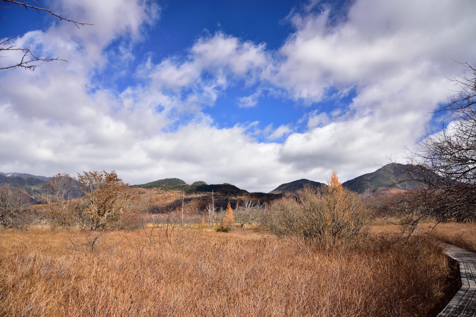 整個天空非常藍,我這時已經是10月底了,10月初應該可以看到較多的楓葉,早上的光線非常棒,如果要來戦場ヶ原,非常推薦早上來。