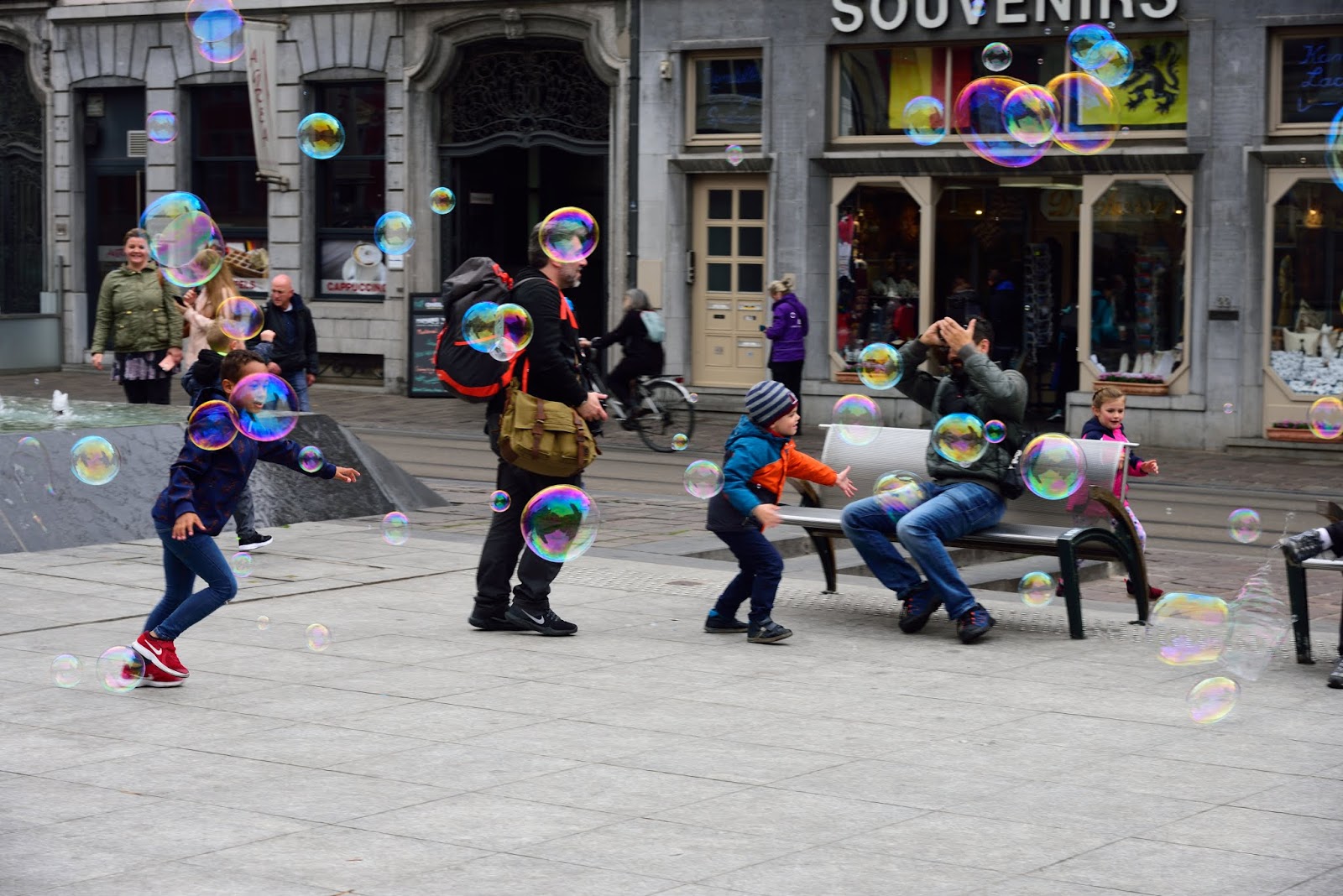 搭巴士的話,上車只要把m-ticket 已經active的畫面給司機看即可,而電車則是如果有查票員在秀給他看就好。在鐘樓附近有一個小廣場,剛好有人在吹泡泡給小孩玩,不管是大人小孩玩得很開心。