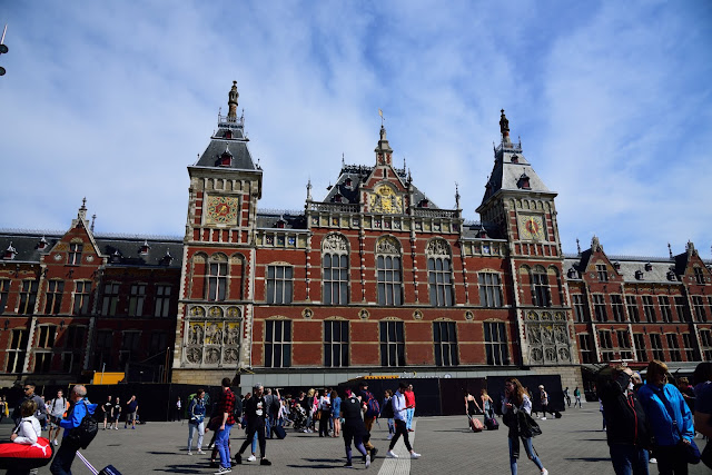 當天從羊角村回到阿姆斯特丹市區就已經將近中午,行李寄放在旅館後就先出去逛市區順便覓食,下圖是中央車站。車站前面就有電車站,在這裡搭電車去各個地方都非常方便。尤其是天氣很冷或很熱的時候,電車就是最佳避暑/避寒的地方。不過我還是先以走路為主,等走累了或是走回程才搭電車。
